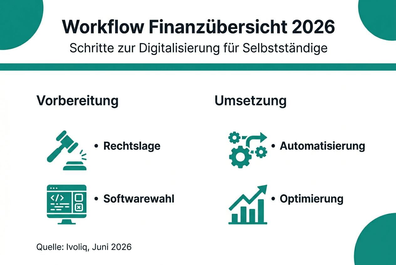 Als Selbstständiger oder Freiberufler im deutschsprachigen Raum kennst du das Problem: Belege sammeln sich auf dem Schreibtisch, Kontobewegungen müssen manuell erfasst werden und beim Monatsende fehlt der Überblick über Einnahmen und Ausgaben. Ein strukturierter Workflow zur Finanzübersicht spart nicht nur wertvolle Zeit, sondern minimiert auch kostspielige Fehler bei der Steuererklärung. Dieser Guide zeigt dir, wie du deine Finanzübersicht effizient und automatisiert aufbaust, rechtliche Anforderungen in Deutschland, Österreich und der Schweiz erfüllst und dabei moderne Software optimal nutzt.